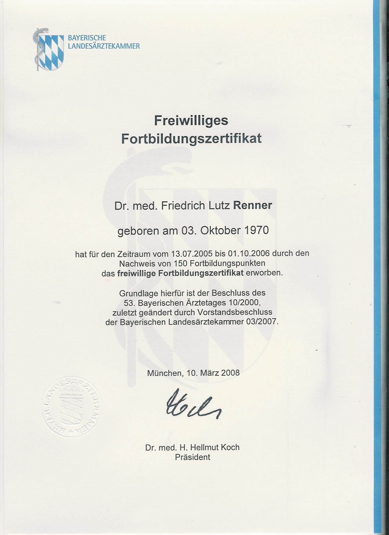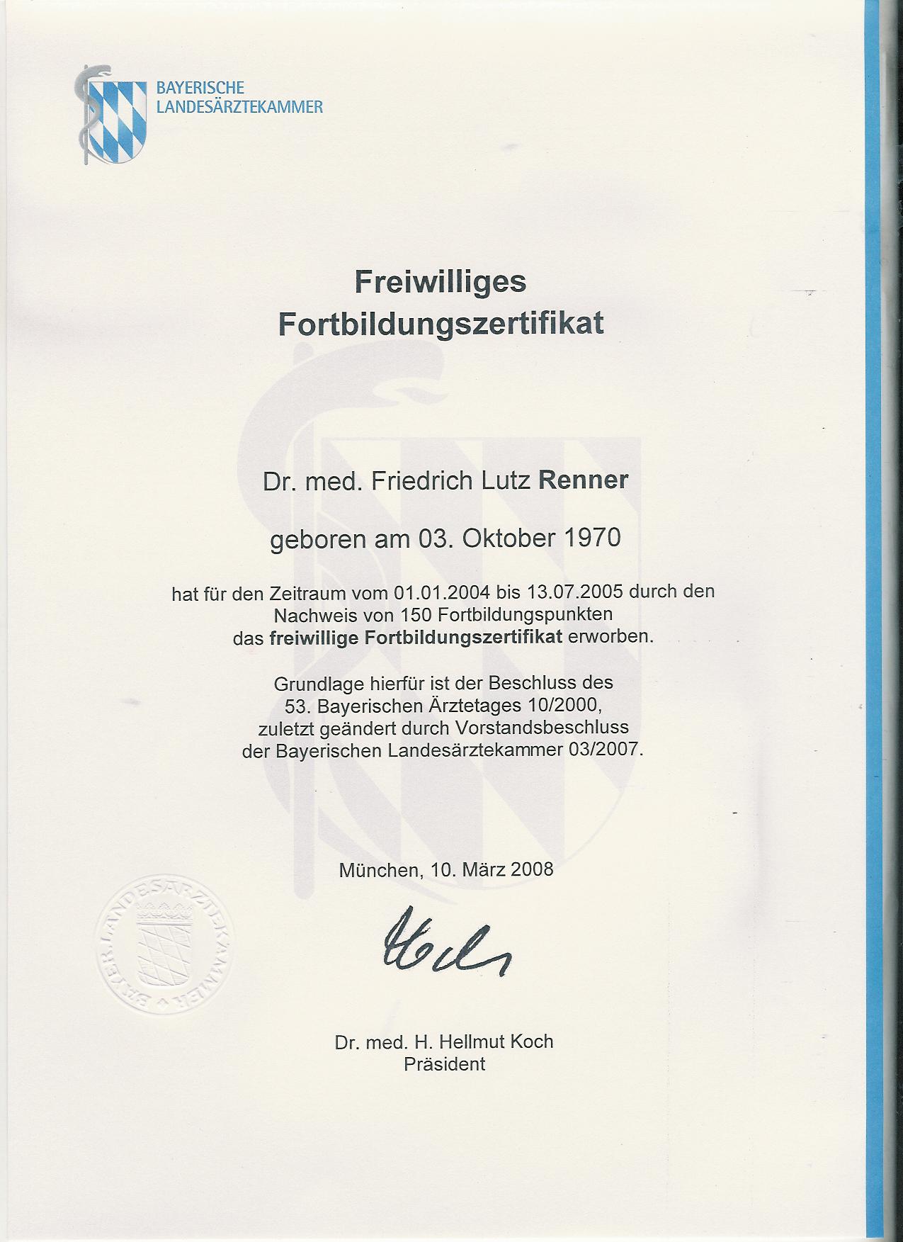 Fortbildungszertifikat der bayerischen Landesärztekammer bis 2008