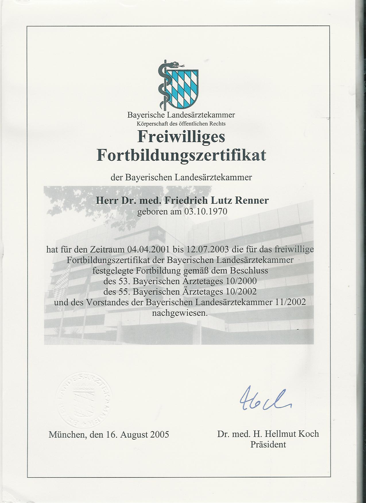Fortbildungszertifikat der bayerischen Landesärztekammer bis 2005